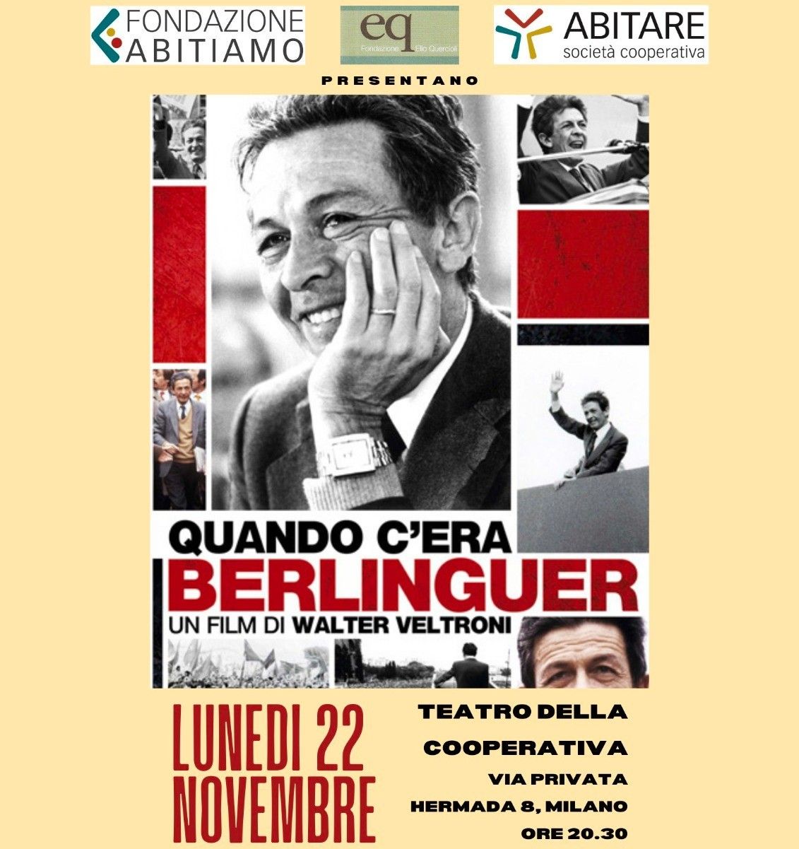 La Fondazione Elio Quercioli in collaborazione con la Abitare Soc. Coop, nell’ambito del centenario dalla nascita del PCI vi invita lunedì 22 novembre alle ore 20:30 alla proiezione del film documentario “Quando c’era Berlinguer” diretto da Walter Veltroni.